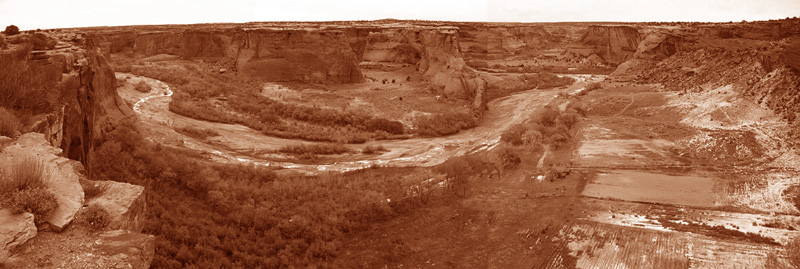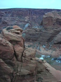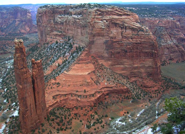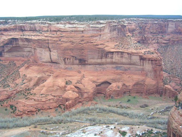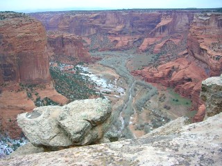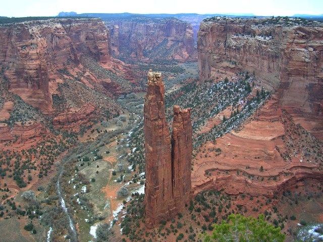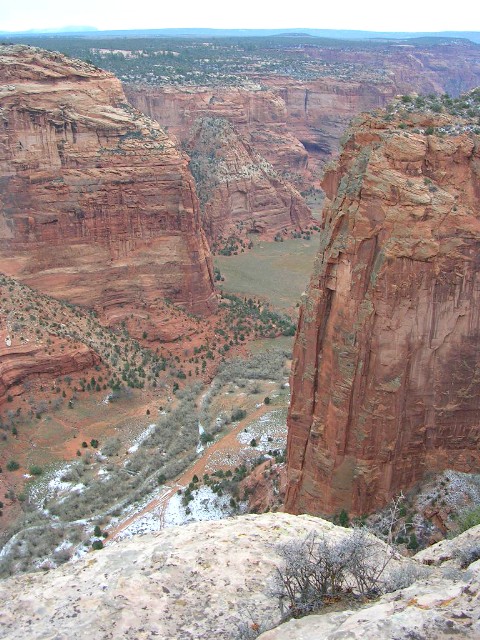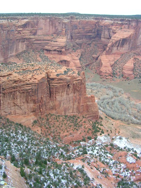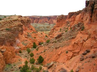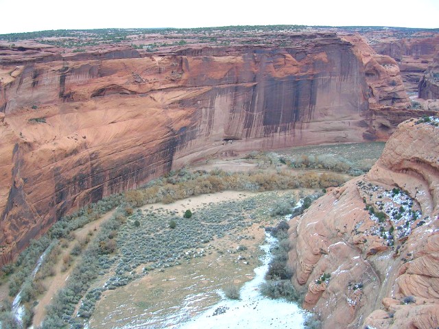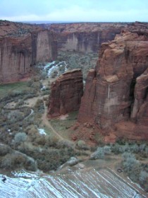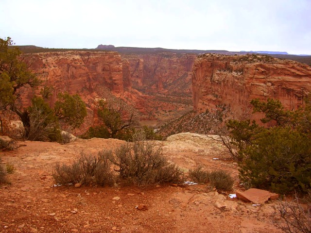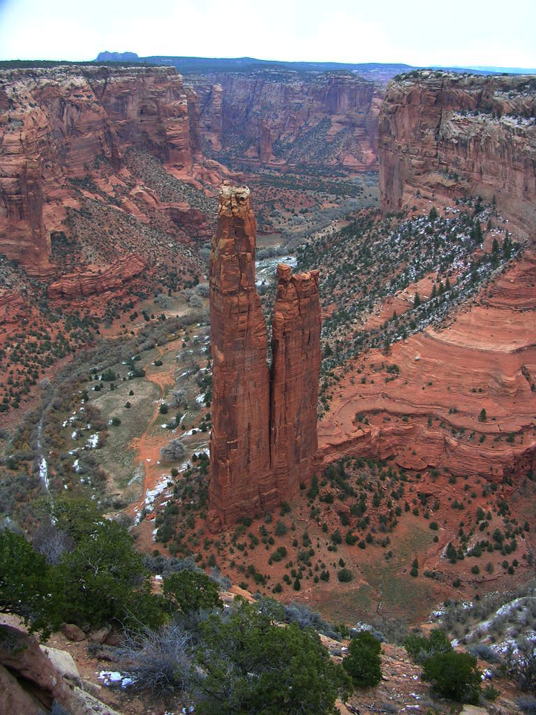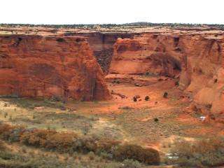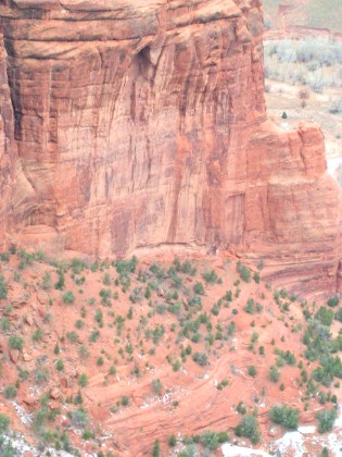ま、そんなことはいいか。ちなみにですね、このキャニオンは先に紹介したホワイトハウスに至る部分だけトレイルが一般開放されています。そこでだけ、トレイルをつかって谷底に降りていく事が出来るのです。ホワイトハウスまでは往復2.5マイル(4`少々)です。さらに谷底に降りて10キロ歩くと上で紹介したスパイダーロックまで行き着くことが出来る筈です。往復20キロ以上になりますが、それだけの距離を歩けば |