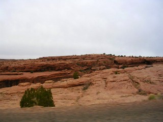 やがて赤い岩肌に囲まれた一帯に入ってきました。場所はキャニオン・デ・シェリー国定公園。 |