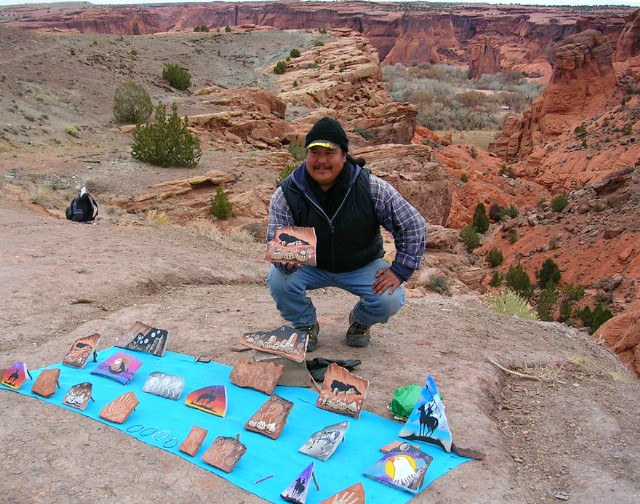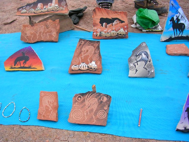 場所、場所でNative Americanの方々が石版に絵を描いて売ってました。1個5ドルという激安価格で、うっかり買いそうになりましたが