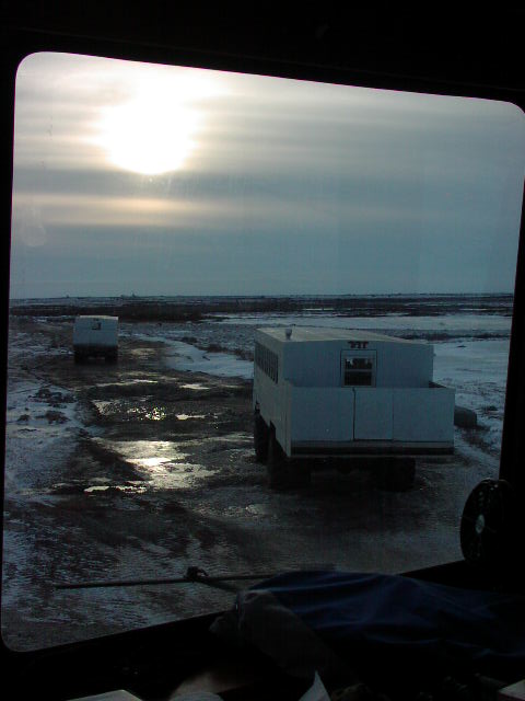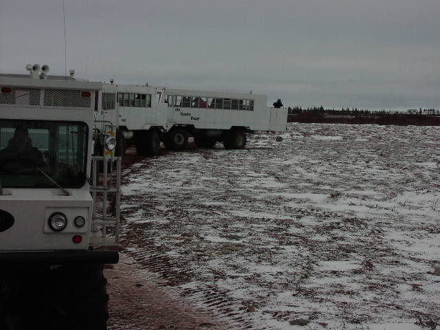 ちなみにチャーチル岬辺りにはこのツンドラバギーを並べてホテルを作っています。一泊800カナダドルだそうです。 |