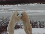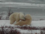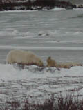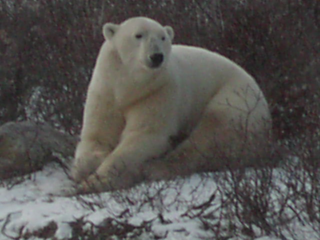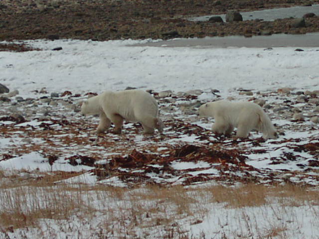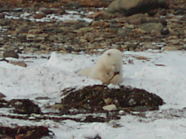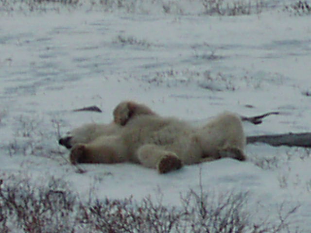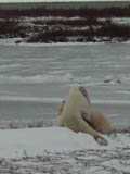ちなみにChurchillは10月中旬から11月上旬に本格的冬の入っていきます。その時期ハドソン湾はチャーチル沖合いから凍り始めるので白熊はそこに集まって凍った海、流氷の上で後は生活します。 |
