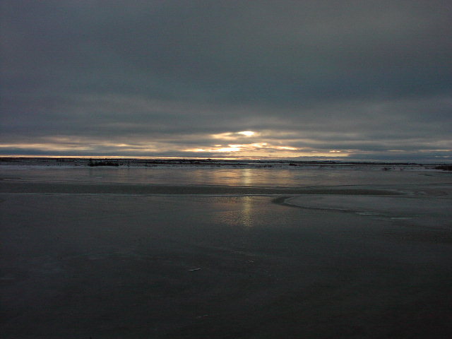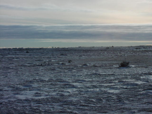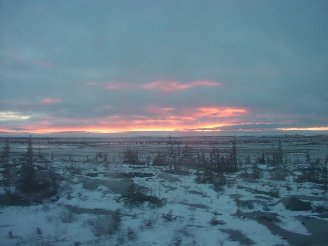Chiurchillの朝です。白熊を見るためのツアーがこの町ではあります。朝早くから出発して8時間かかります。 |