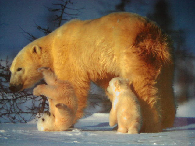 白熊は多くの場合、一匹で単独生活しています。特にオスは単独行動を好みます。メスは子供とだけ一緒にいることが多いです。ちなみにオスは子供を見ると殺して食べてしまうことがあります。ですから子供をつれたメスはオスを見かけると逃げていってしまいます。 |
