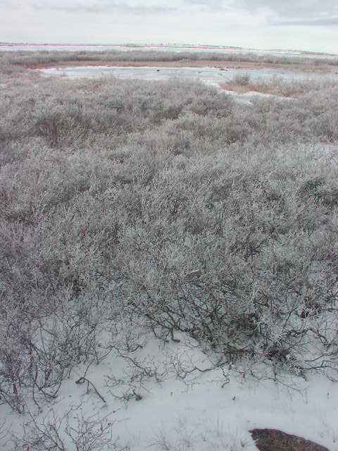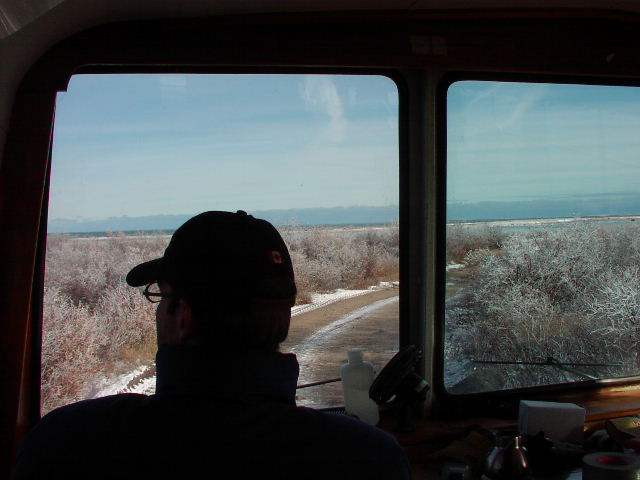 バギーは表面の凍り始めたツンドラの大地をどんどん進めるのです。これは典型的チャーチルの景色です。 |