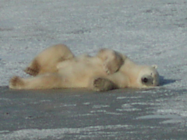 Seasonといいます。それをすぎると全ての白熊は流氷に乗ってハドソン湾に出て行きひと冬で1000キロ流氷上ですごすのだそうです。 |