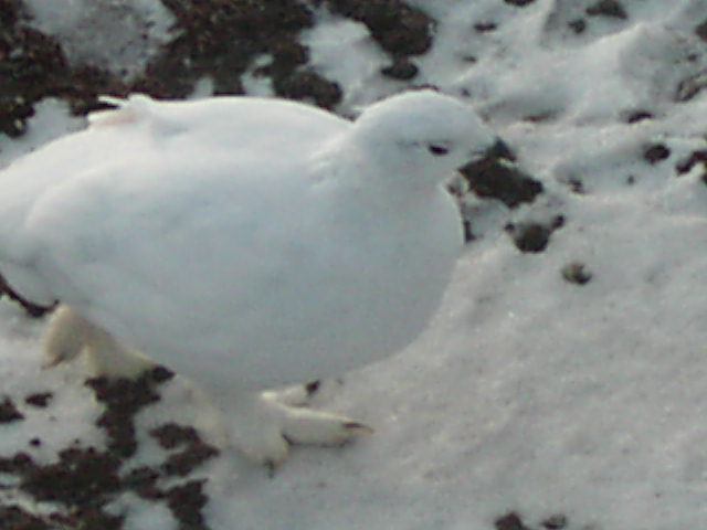 これは北極雷鳥です。不思議ですね。本当に。白熊といい、北極キツネといい、北極雷鳥といい、見事なまでに真っ白。どれも雪より白いです。
