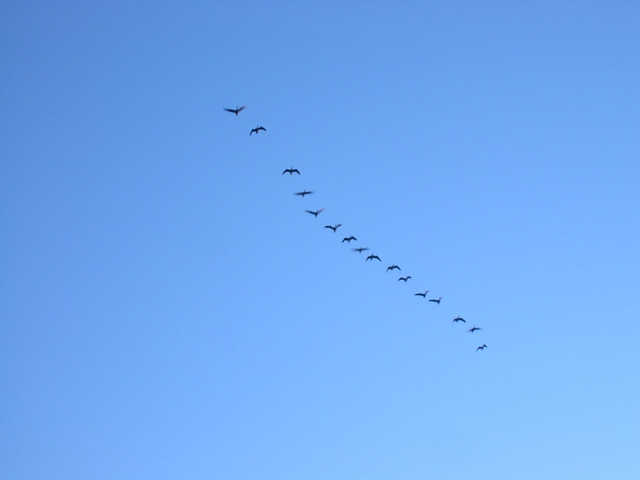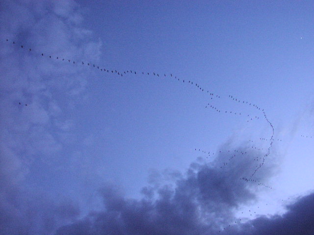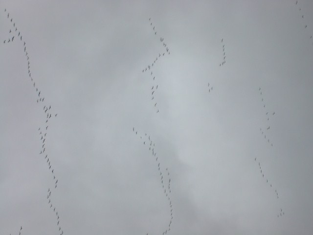 鶴は集団で隊列をなして飛来するためその姿は壮観です。