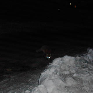 ようやく、真っ暗な中、月明かり照らされたトレイルを歩いて到着した駐車場になにやら動く黒い影 |