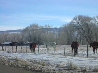 いやに広いと思ったら、一帯は牧場でした。馬は冬も関係なく元気なので白い息吐きながら牧場を駆け回ってました。 |
