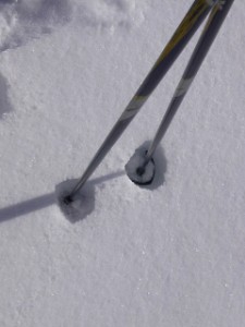 ちなみにスキートレイルには2本の細い丁度スキー板幅の溝があります。この溝、フリー・スタイルで滑る人には必要ないですが、クラシック・スタイルで行く人が使うものです。 |