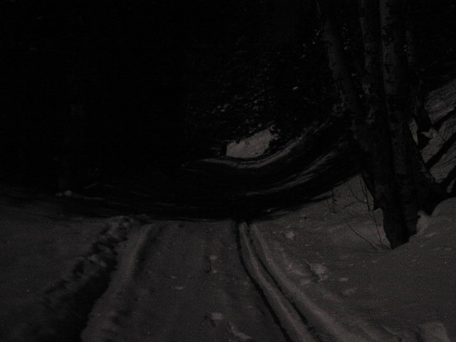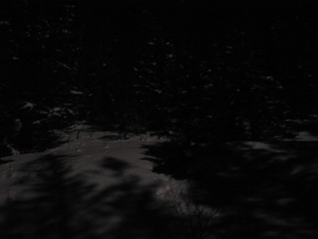 こんな夜闇、月光、雪の中、森に迷いこむのは普通に考えても怖いくらいでしょうが、実際にこれはさすがにちょっとだけ怖かった。笑 |
