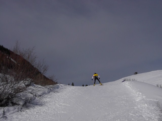 しかし、ちょっとした登り道があると、それはクロスカントリーの滑り方をきちんと学んでいない凡人には大問題。かるーい登りですら、まさに”ひーこら”いってやっとこさ登る絶壁のようでした。笑