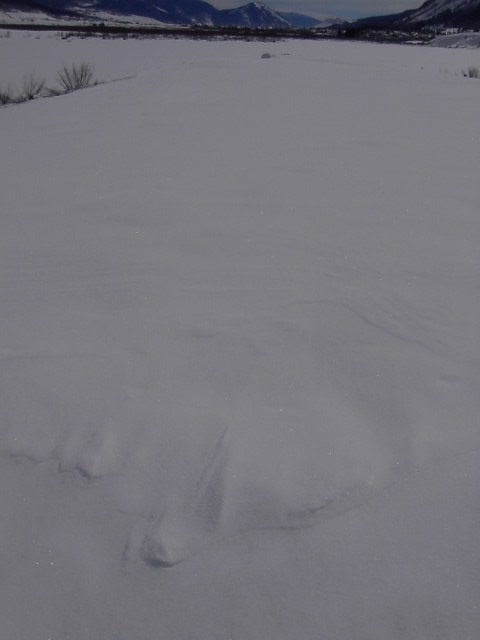 上のトレイルから見下ろしていた川まで下りてきて自分だけの足跡を作っていく世界というのは夏場にはないBockcountryの世界で |