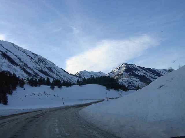 山深くドライブになりますが、アメリカの道路整備状況は素晴らしいです。2500m越える場所でもこのとおりのハイウェイ。日本道路公団も頑張って欲しいものです。 |