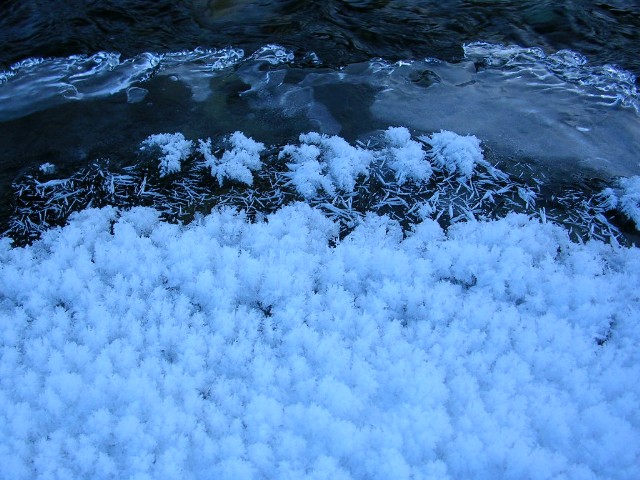 サラサラと音を立てる川、美しい雪と氷 |