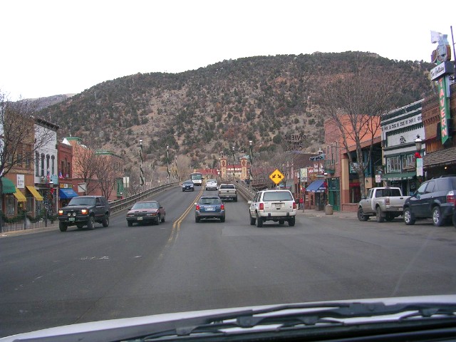 Springsの町に到着します。ここはロッキー山中にあっては比較的大きな街です。東にVeil、南にAspen、西にMoab等々の名所を従え、この場所自体にでっかい温泉がありますのでそれで栄えている町です。 |