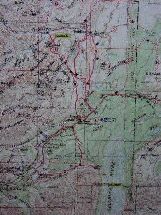 更に、地図見て分かりましたが、この周囲の山とツンドラ、タイガの森には沢山のトレイルがありました。Hiking、遊覧飛行が手軽に楽しめる場所です。この場所、ほとんどデナリと同じくらいに魅力ある場所だと思います。 |