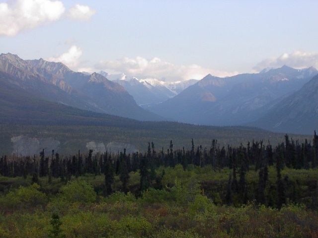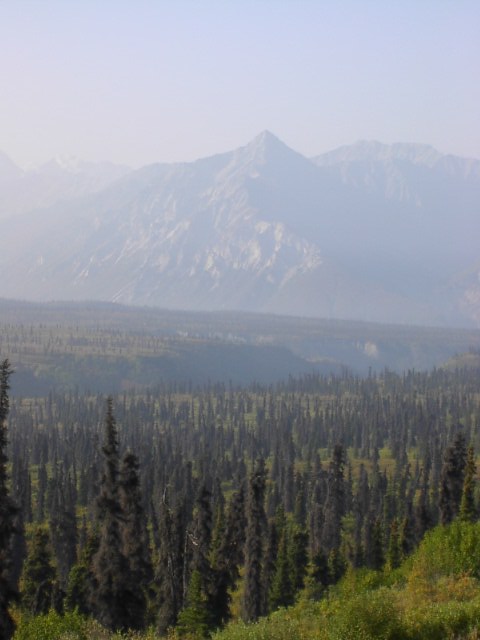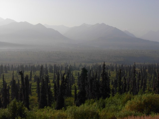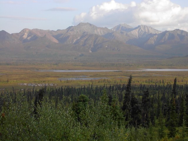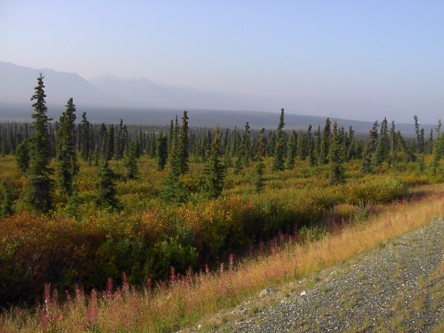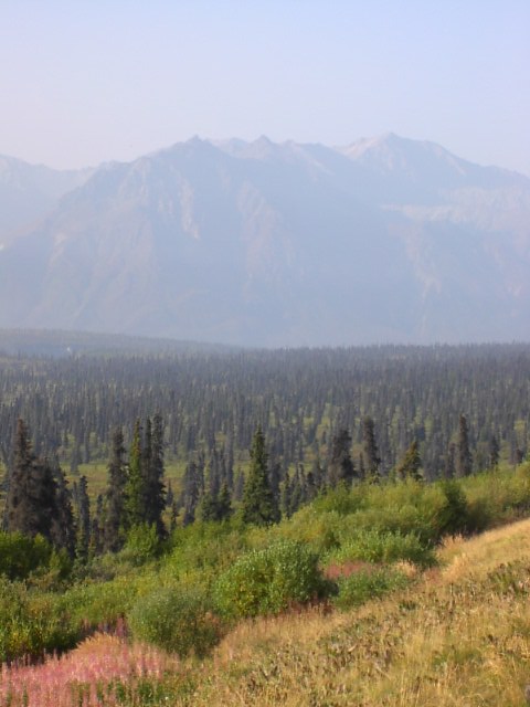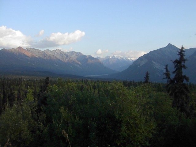 2004夏アラスカ。Glenn Highwayをアンカレジからどんどん東へ。道路周辺は沢山のチュガッチの山々があったり、川があったり、ツンドラがあったり、タイガがあったり...どこもアラスカ的です。どこかが違うココだけの雰囲気。