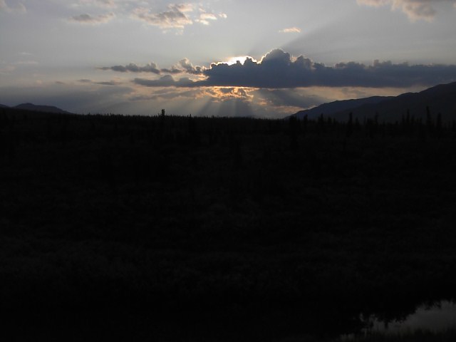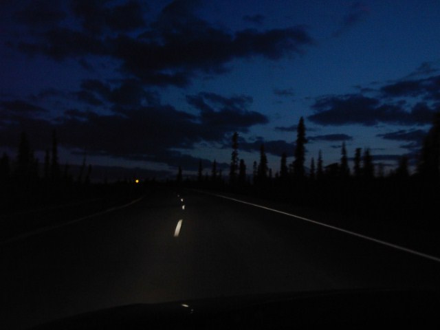 それまで凡人はデナリ等で意地でもオーロラ見ようと思って、夜中、寝袋外に出して天を仰いで寝ました。それはそれで大空に輝く星は美しくそういうことは他の機会にはやりませんから格別な思いでしたが、オーロラは目にできなかったんです。時期は8月末。アラスカでオーロラが出現し始めるスレスレくらいの時期です。ハッキリ言ってこの旅では見れなさそうだ、ともう諦めていました。一晩中おきて空を見るというのは並大抵の努力ではありません。