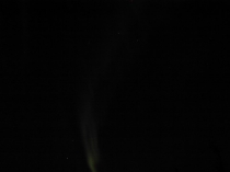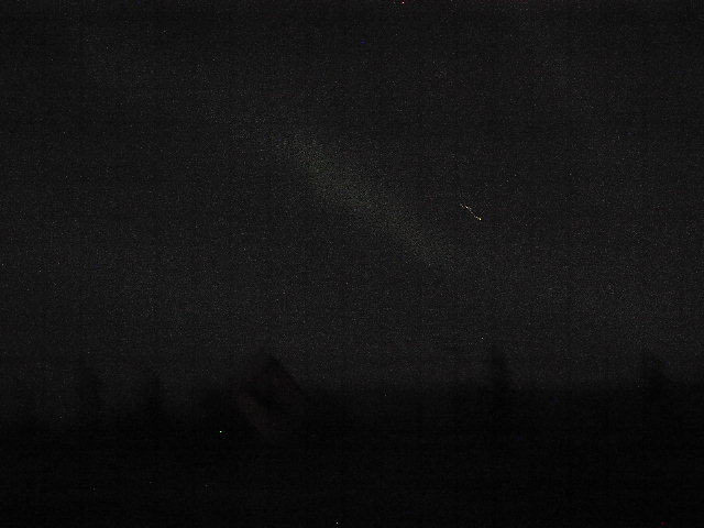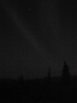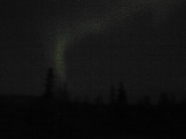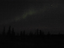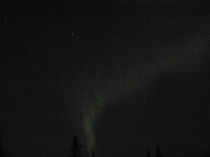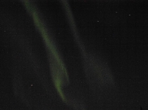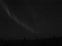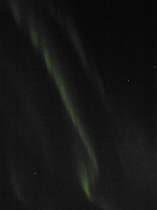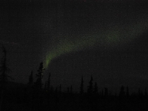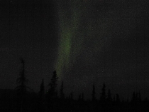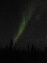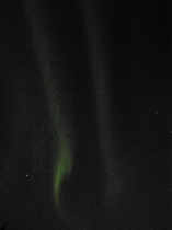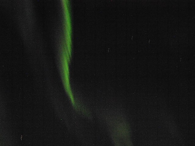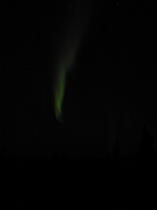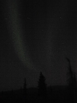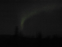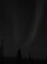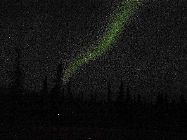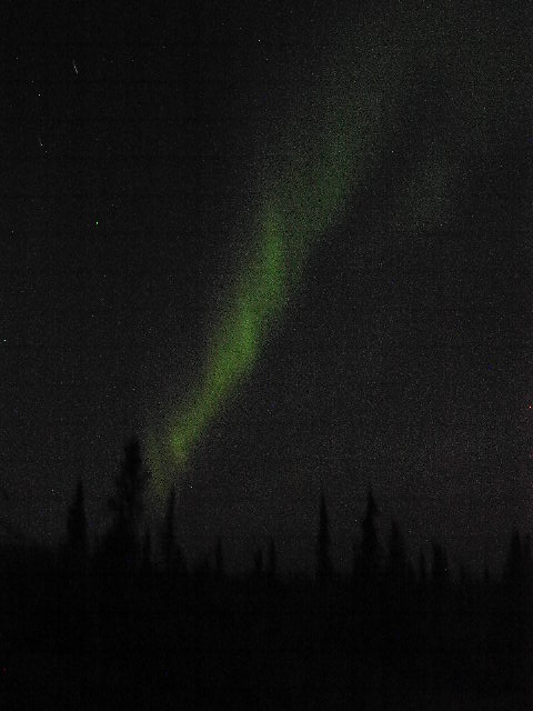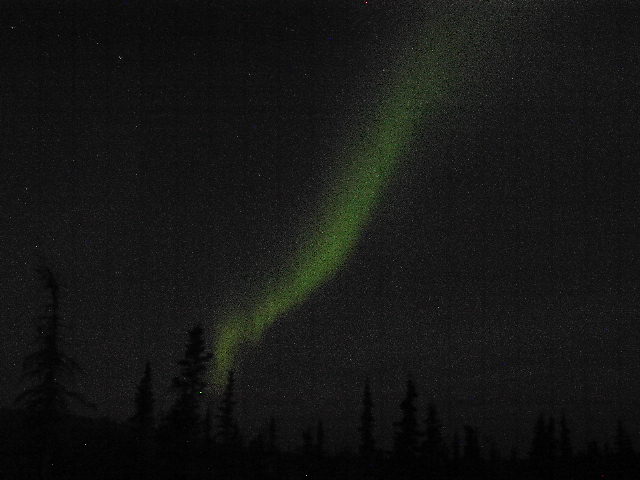 当然ですが綺麗でした。どのくらい続いたでしょうか?よく覚えていませんが、決して長くはなかったです。多分、30分もないくらい、ほんのひと時の出現でした。ユラユラと天で本当にカーテンを思わせるようにゆれてました。そして、出ては消えて、また別のところに出ては消えて... 嬉しかった。ラッキーでした。2004アラスカ最後の夜に見れて。