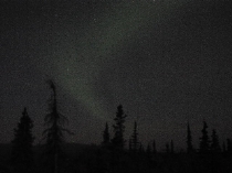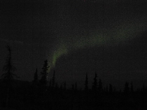 この旅行ではデナリでも、キナイでも、ランゲル・セィントエライアスでも見ることはできなかったんで最期の一晩のこの夜、もう、完璧に諦めていました。それなのに、偶然にもオーロラに出会うことができたんです。 |