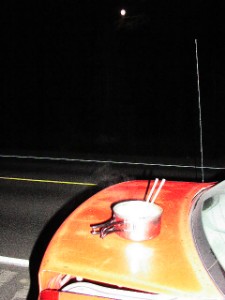 オーロラが一際明るく地平線近くに出た、とラーメンモグモグ喰いながら見ていると、眼鏡がラーメンの湯気で曇ってしまいました。あわてて曇りを拭き取り再度、天を見上げた時には真っ暗。もう2度とオーロラはその姿を現しませんでした。
