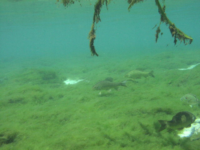 Alexander Springsの大部分の魚はこいつらです。名前は分かりませんが、ブルーギルの系統でないかと思います。こいつら人を全く恐れません。餌としてこっそりパンを持ってきていましたので自分の周りに群れてきました。
