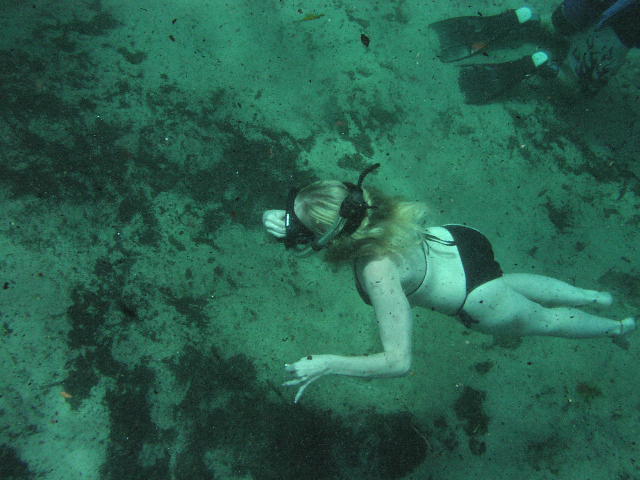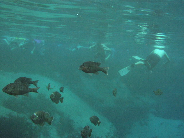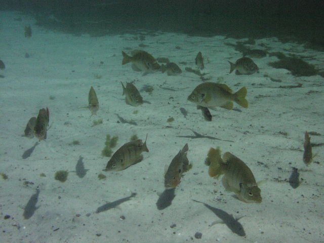 こんな感じなんです。ずーっと自分の後を追いかけて来ました。水が綺麗なので魚は空中に浮いているような感じです。魚とその影が同時に目の前で動くのが一層そう思わせ、ちょっと不思議な感じでした。綺麗な水のなせる業です。 |