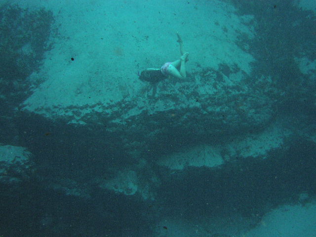 Headに向かって潜水して楽しんでいました。自分もその一人でした。実際に自分も最初目にした瞬間は怖くて鳥肌が全身に立ったのを思いだしますがその後はこの場所を2時間ほど泳いで楽しんでしまいました。