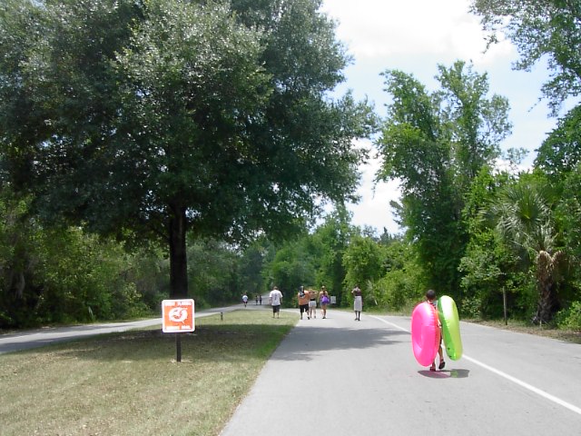 そこから歩いて公園内に入りました。皆そうやっています。この日は5月末だったのにとても熱くフロリダの夏でした。 |