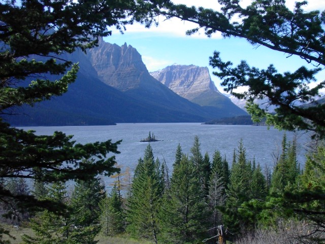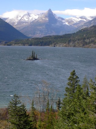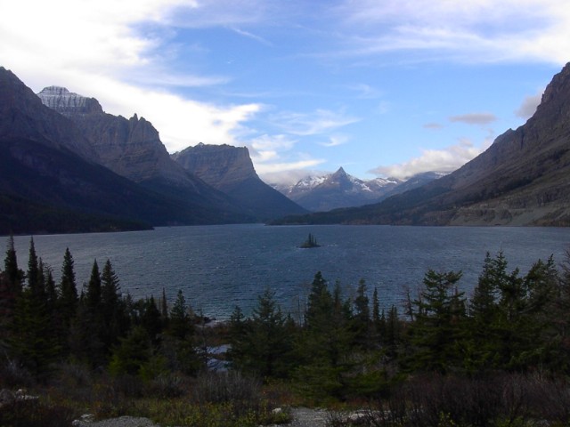 東側のそのVisitor Centerから西に向かうとそこには東西にひょろひょろと長いセントメリーレイクという湖があります。これは氷河湖、つまり |