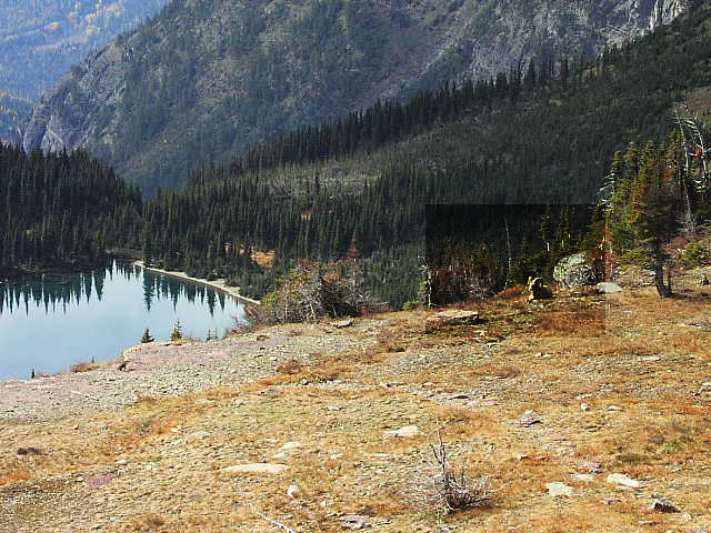 Maryサイドは東から吹いてくる(Glacierの山々を越えて冷やされた)風でとっても寒かったです。人も殆どいませんでしたし、生物もあまりいませんでした。もう冬もそこまで来てたからです。 |