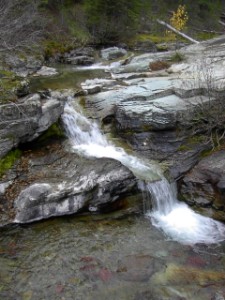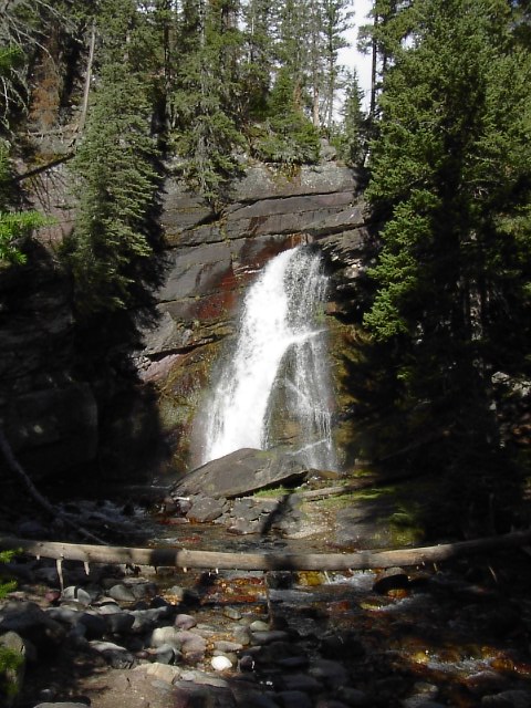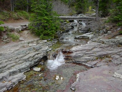 Lake McDonaldに流れ込みます。これもやはり氷河湖です。氷河が削りだしたU字谷の底に水がたまって湖をなしているのです。 |