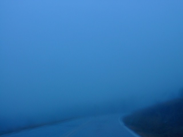 道路はところどころ雲の中に突入したりしながら、それでも休むことなく先にすすみました。 |