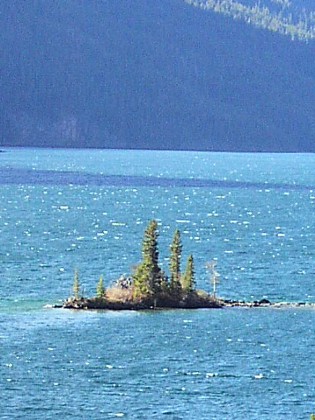それにしても、この湖の両側を縁取る山の稜線の美しいこと、そして湖の中心にポッコシと浮かぶ(?)かのように存在する |