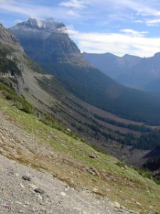 車に戻って移動。Glacier国立公園の背骨となるロッキーの山々をGoing