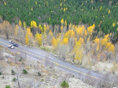 Lake McDonald周辺は特に紅葉はいい感じでした。黄色を主体に赤も橙も目につきます。 |