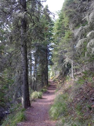 このMt. Mary Lakeの際のトレイルは実に水の豊かな場所で気持ちのいいところでした。そのトレイルを |