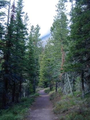 つまり、天気が許せば3時間でなんとか7キロ少々先にある湖見て、夜道をヘッドランプで帰ってくる覚悟で出発したのです。途中、雨になれば撤退しようということで。これは結構な決断でした。普通に考えれば登り道と言う状況を考えれば完璧に実行不能なのです。 |