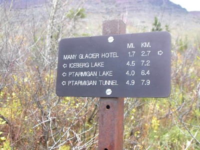 看板見ながらIce Berg Lake目指しました。見て見るとIceberg