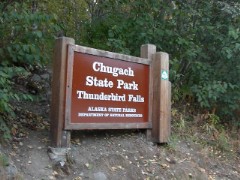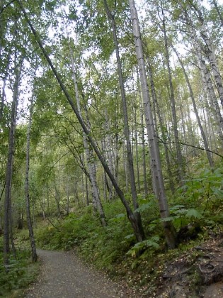 数十分行くとChugach州立公園という奴があってちょっと立ち寄りました。トレイルあったので歩いてくと |