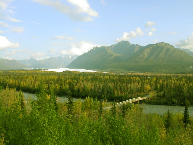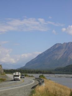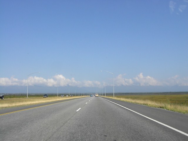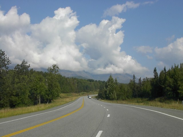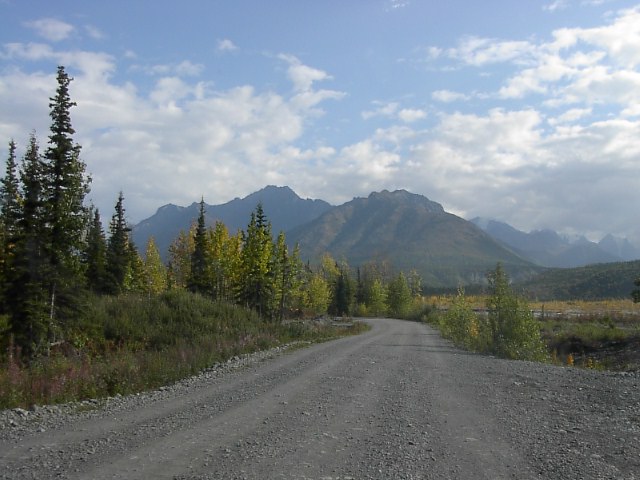 マタヌスカ農業地帯周辺の町がGlenn Highway上では最後の大きな町でその後は爽快な自然を走る抜ける道路となります。 |