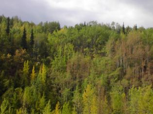 ちなみに、この辺、マタヌスカ農業地帯がひろがっていて、アラスカの穀倉地帯です。丁度、8月末のこの日、Alaska State Fairがあっていました。これについては後に別のところでまた紹介しましょう。かなり特徴的農業祭です。このちょっと傍にはジャコウ牛牧場とかもあるらしいです。 |