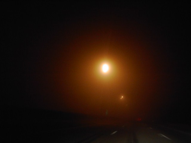 100キロくらいで運転していると視界が効かなさ過ぎて怖くてたまりません。前に車が止まっていたら間違いなくぶつかると思います。流石に怖くなって朝まで少しやすみました。 |