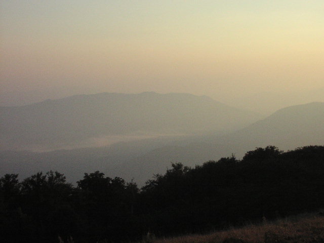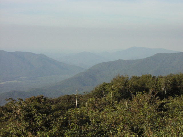 そして翌朝、Basecampからちょっと歩いて山頂へ。山頂とはいえ、アパラチアはとてもなだらかな山ですので丘といった感じなのですが。ま、こんな感じです。眼下にはアパラチアの山々が低く何処までも続いてました。 |