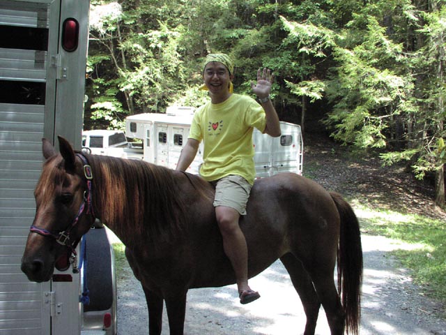 んでもって、モカにのって遊びました。30分ほど。ご主人さんが引っ張って一緒に歩いてくださったのです。もともと、競馬(賭ける事には全く興味はない)で馬の走る姿を見るのですら好きだった凡人はすっかり虜になってしまいました。Iowaに長くいれるのであればFarm