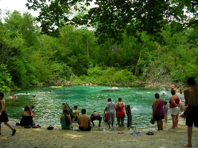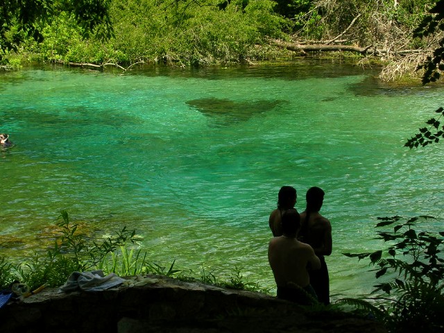 でも実際には人が多すぎ...殆どイモ洗いのような状態で、日本の海水浴場みたいなもんでした。こりゃいかん。泉周囲は岩で囲まれ、その周囲を森が覆っています。泉の多くの場所には(州立公園管理者が)海岸の砂を入れてます。泳ぎやすい感じにする為の人為的なものですね。ま、結果、感じのいい場所には仕上がってましたが、なんせ人が多すぎます。これには参りました。凡人的には誰もいないくらいが丁度いいんですが... |