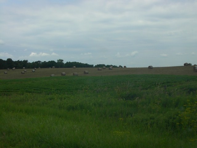毎度ですがIowaです。これはIowa辺りなら何処ででも見かける牧草です。暖かい時期にこのように巨大な(直径2mくらい)牧草のロールを作っておいて冬に備えるんですね。これがやがて自分達が食する牛肉になるわけですよ。この手の牧草は彼方此方にゴロゴロしています。これを見るたびにアメリカの田舎を実感するのは自分だけではないでしょう。 |