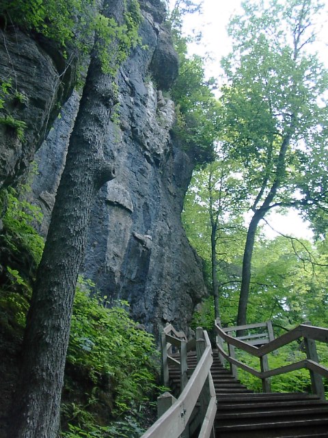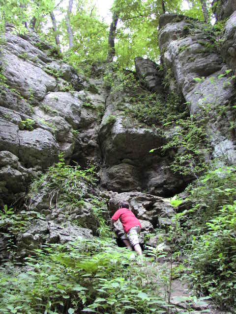 と真剣に思わされてしまうくらいでした。巨石、深い木々の中をとても巧妙にトレイルが作られています。歩いて変化に富み、楽しいトレイルといえます。このような中、彼方此方に洞窟が口を開けているのです。丁度、ボーイスカウト、ガールスカウトの子達が来ていて、泥だらけになって洞窟探検して遊んでいました。皆、キラキラ目が輝いていてニコニコ笑って