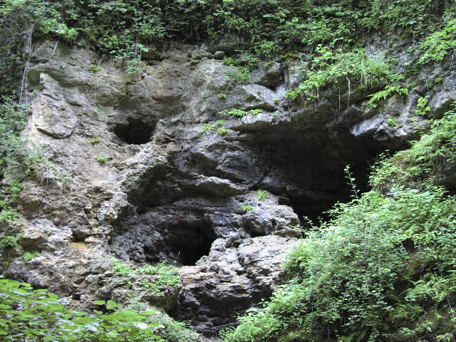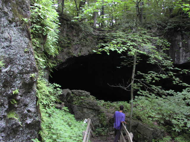 途中そんな緑の中、この公園の目玉の洞窟がいくつかありました。トレイルがそこに伸びてはいるのですが、洞窟は自己責任で...という状況です。どのくらい深いんでしょうかねぇ?